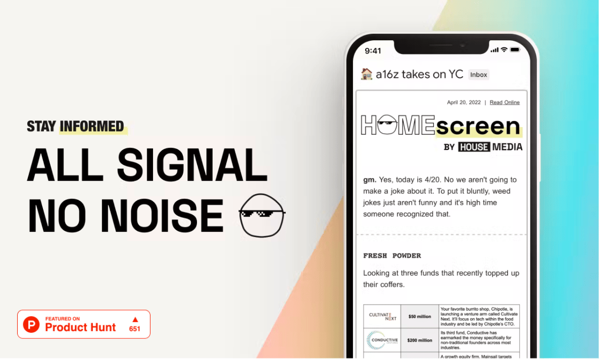 Gm. Today is a special one: Homescreen is launching on Product Hunt! For those not familiar, Product Hunt is basically a big ole leaderboard for new products.