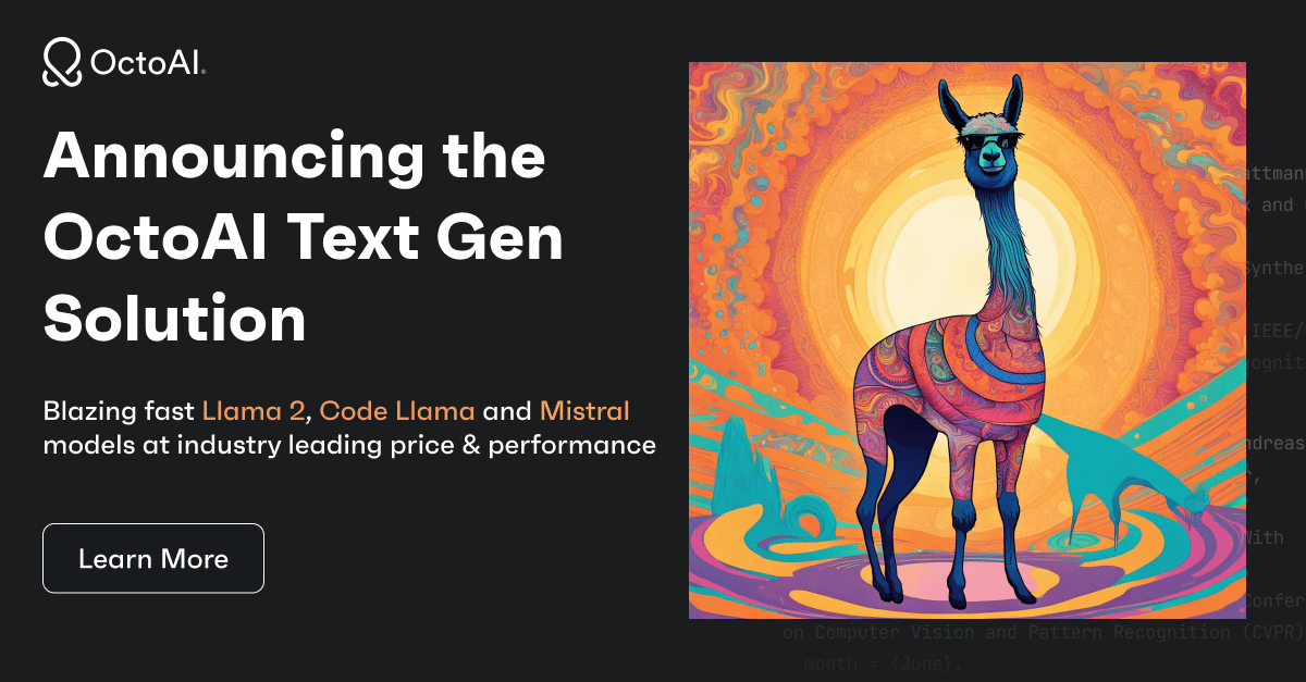 OctoAI just released blazing-fast, ready-to-use endpoints in their new Text Gen Solution, allowing you to scale seamlessly as your LLM app takes off.