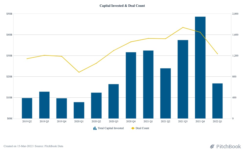 Alex WilhelmĀ at TechCrunch dug through Pitchbook data to find that VC investments are notably slowing down in the region, as you can see from the chart above.Ā