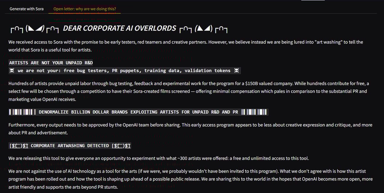 OpenAI maintains Sora is in 'research preview,' emphasizing they're balancing creativity with safety measures. But the protestors argue this controlled rollout is more about PR than genuine artist collaboration.