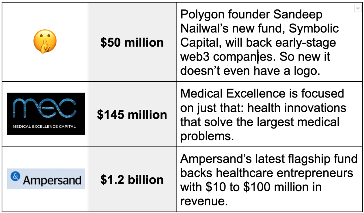 Looking at three funds that recently topped up their coffers.
