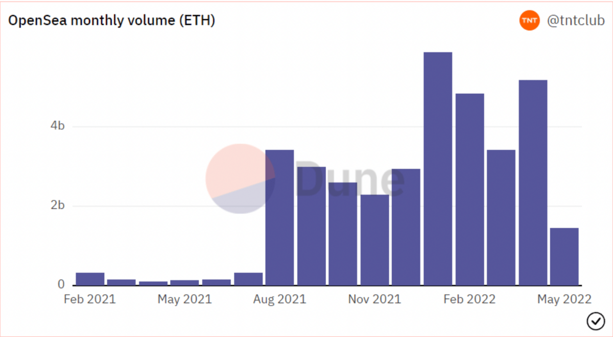 Stat: Despite a widely circulated WSJ report on allegedly cratering NFT transaction volume, the April data on OpenSea (courtesy of Dune Analytics) tells a different story. In total $5.2 billion was traded on the platform, making April the second-highest month by volume in OpenSea history.