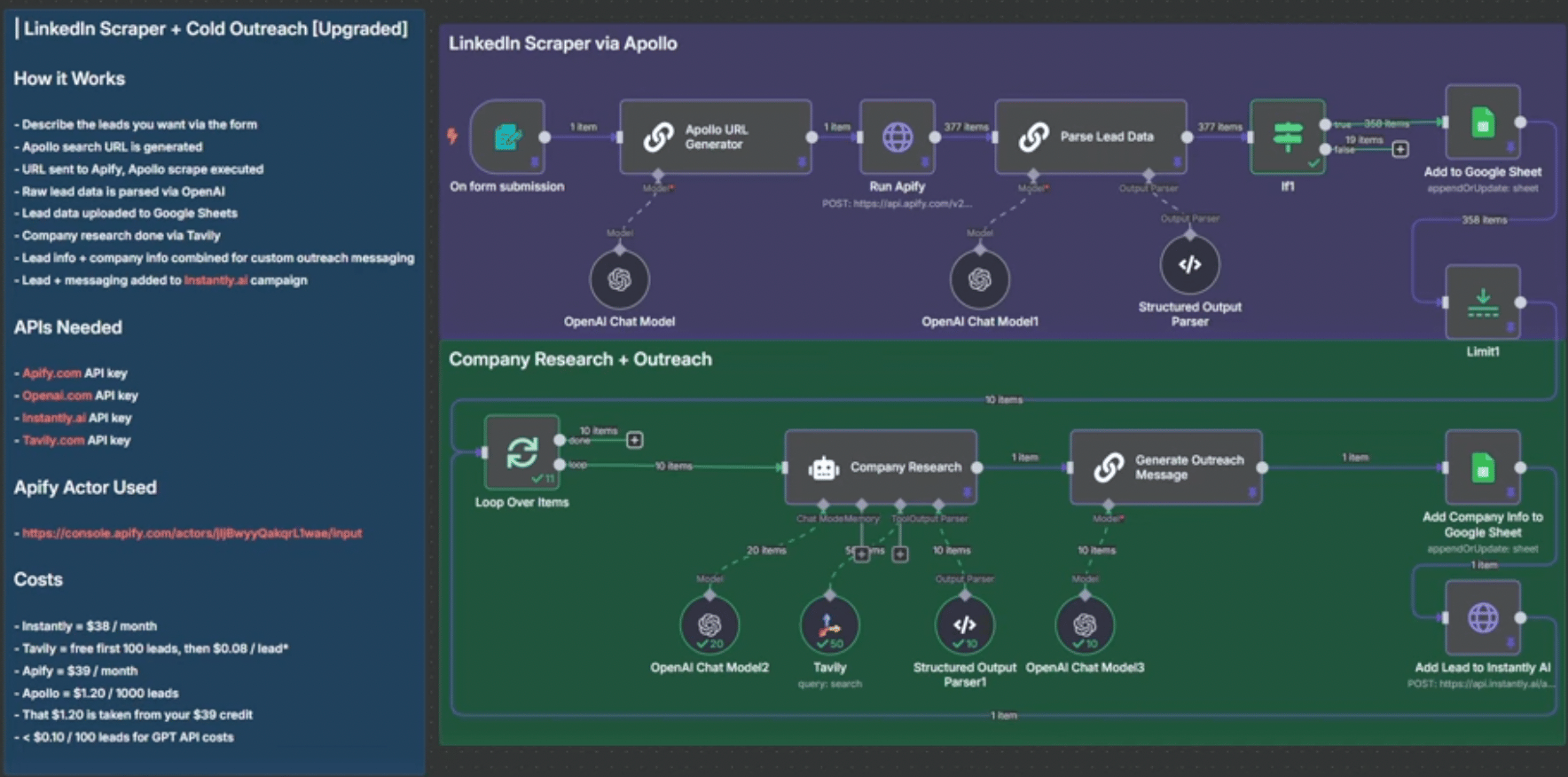 For probably under $100/month, it automates the entire SDR stack - lead sourcing, enrichment, writing, and outreach - with a single workflow.